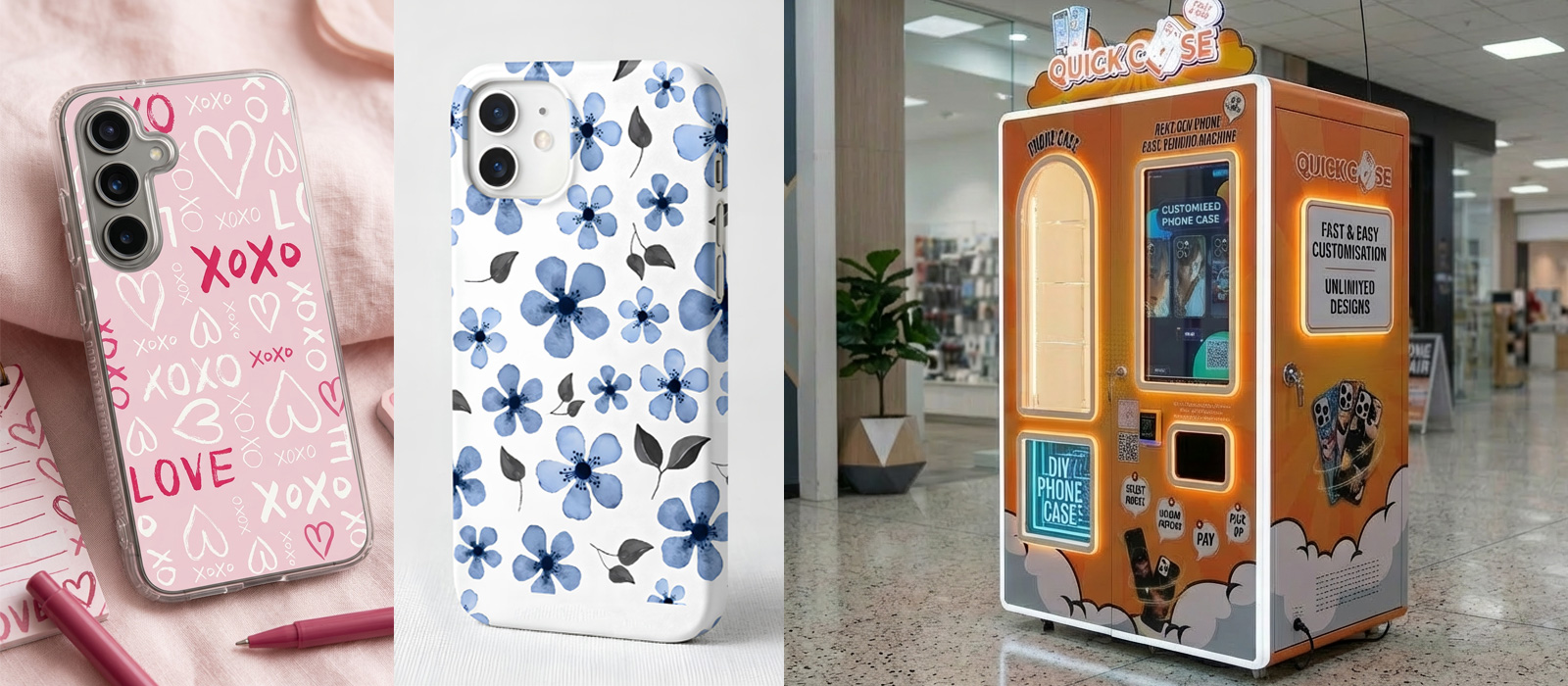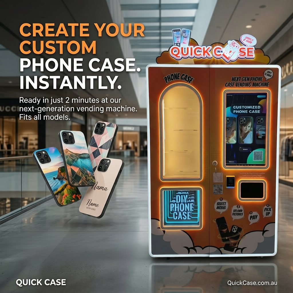 Empower your business with Quick Case innovative custom phone case vending machines. Whether you’re interested in purchasing or renting, our solutions are designed to captivate your customers and drive sales. Discover how you can offer a unique, personalised product experience that sets your business apart. Contact us below to learn more about integrating Quick Case into your operations and start attracting a diverse audience today!